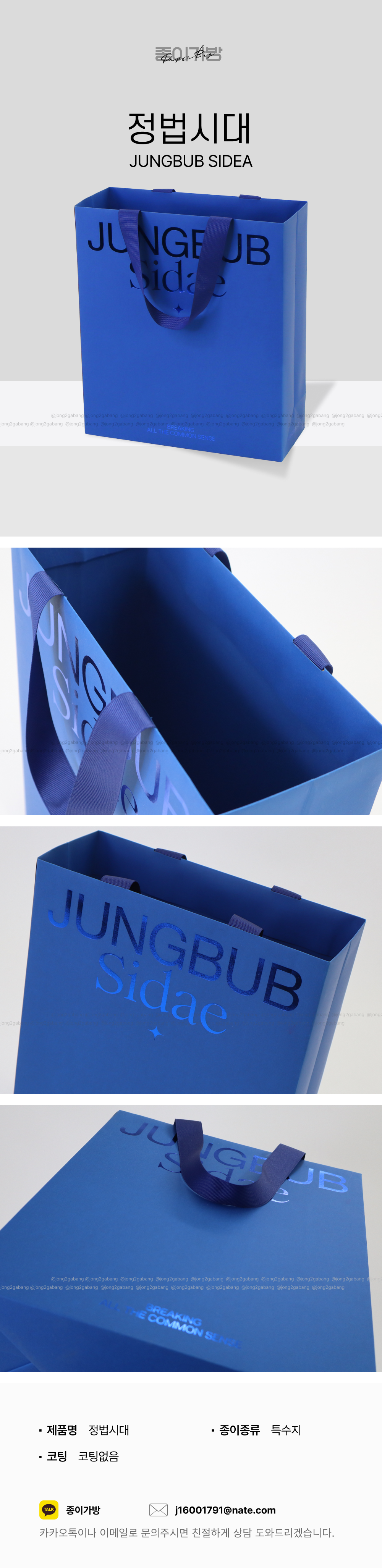 상호명 : ㈜종이가방ㅣ CEO : 강영재 ㅣ 주소 : 경기도 고양시 일산동구 장항로225번길 149 2층 ㅣ Fax : 031-816-1999
